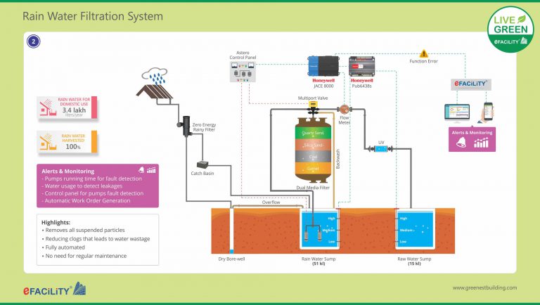 Installing a grey water recycling system in the building is a good way to recycle used water and purify it for re-use.